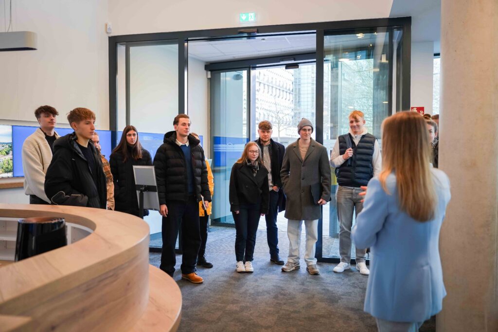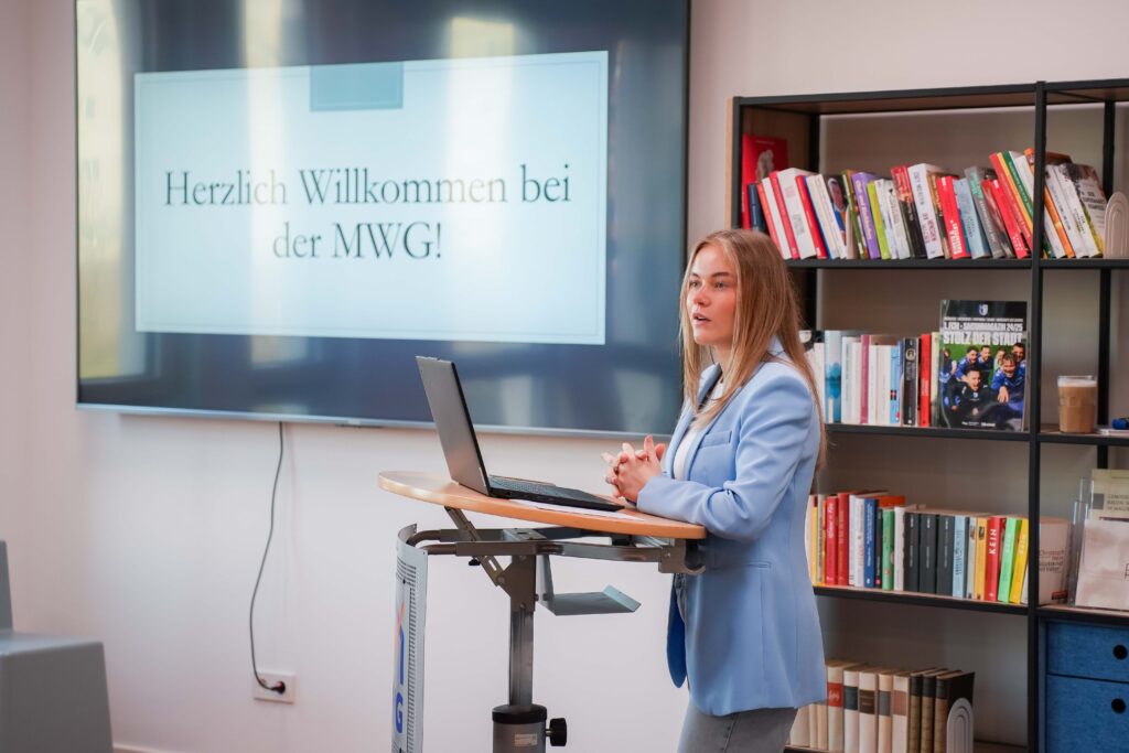 Die Auszubildende der MWG aus dem 1. Lehrjahr begrüßte die Gäste und stellte die Wohnungsgenossenschaft sowie aktuelle Projekte vor. Der direkte Dialog zwischen den Auszubildenden bot spannende Einblicke in unterschiedliche Branchen und zeigte, wie wichtig frühzeitige Vernetzung ist.